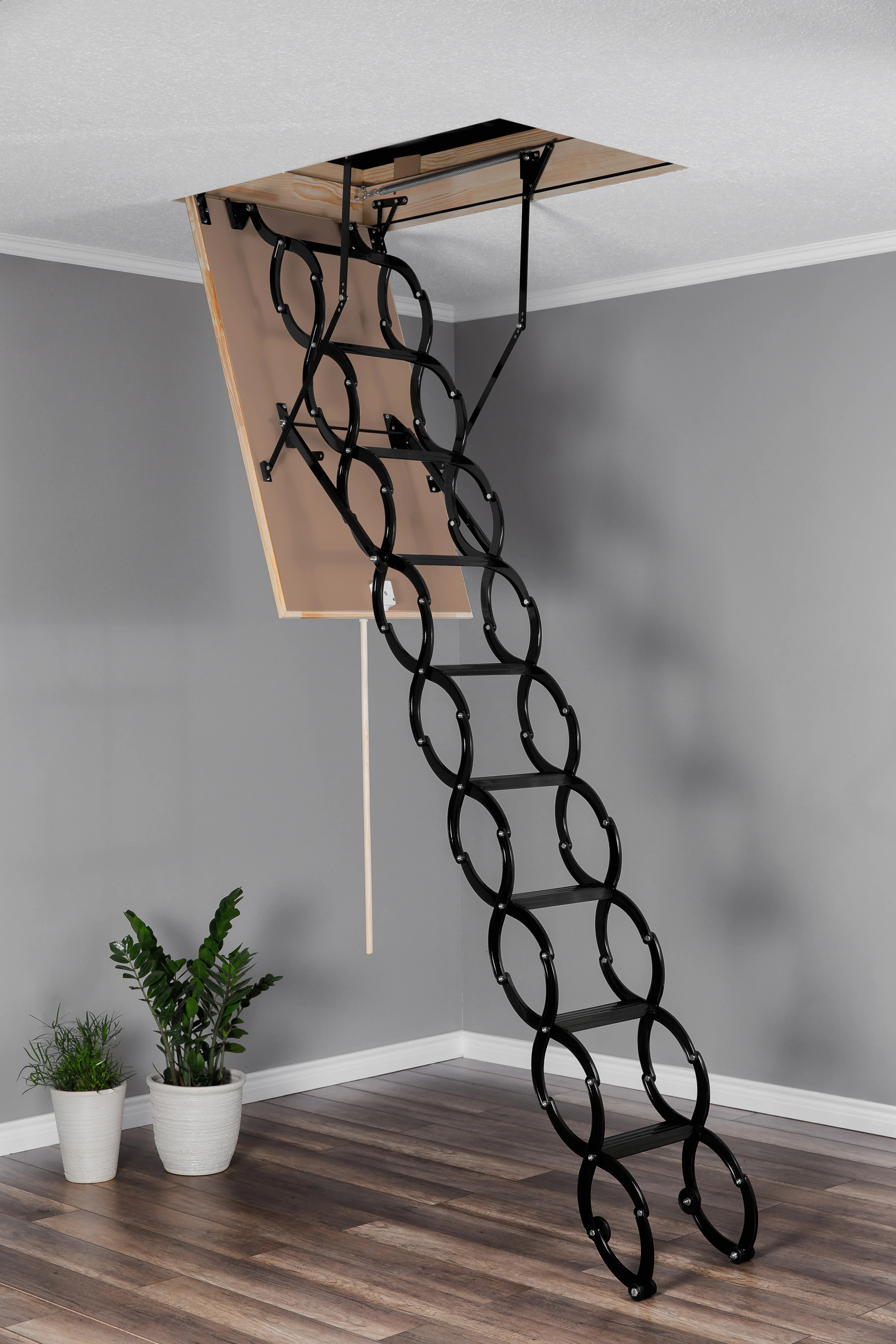 Модель EXTRA идеальна для условий, когда чердак плохо утеплен и требует дополнительной теплоизоляции. По контуру короба одинарный уплотнитель. Лестница имеет нескользящие ножки, которые идеально прилегают к земле, предотвращают появление царапин на поверхности пола и придают эстетичный вид после ее резки.