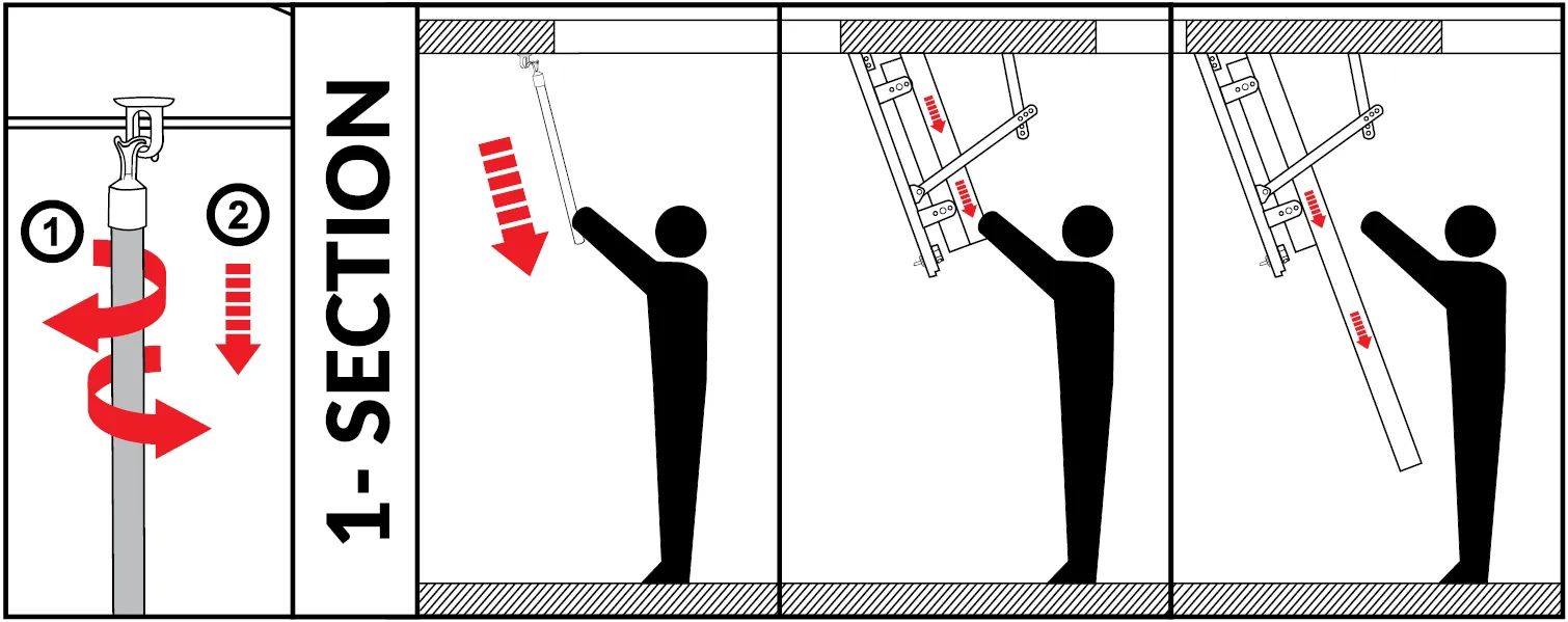 Лестница раздвижная двухсекционная, изготовлена из сосны. Термоизоляционная крышка типа "сэндвич" имеет усиленную теплозащиту, облицована с двух сторон ДСП белого цвета. По контуру короба имеется уплотнитель. Все металлические элементы лестницы покрыты порошковой краской, ступени лестницы имеют антискользящие насечки и закреплены в столярное соединение «ласточкин хвост», что позволяет выдерживать нагрузку 150 кг. При раскладывании лестницы нет вылета за пределы короба, что позволяет использовать эту модель лестницы в таких помещениях, где невозможно использовать чердачные лестницы с большим разбегом открытия. Удобна для эксплуатации на большой высоте. Деревянный стержень для открывания лестницы в комплекте..