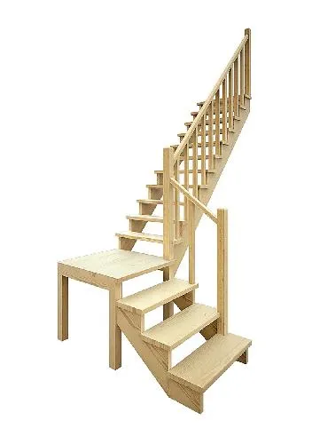 Универсальная лестница, имеющая в основе своей конструкции наклонную опорную балку. Легко впишется в любой интерьер, даже на неровном полу. Место под площадкой можно закрыть и использовать для хранения различных предметов. Монтаж осуществляется силами двух человек на объекте по указаниям, приведенным в паспорте на лестницу.