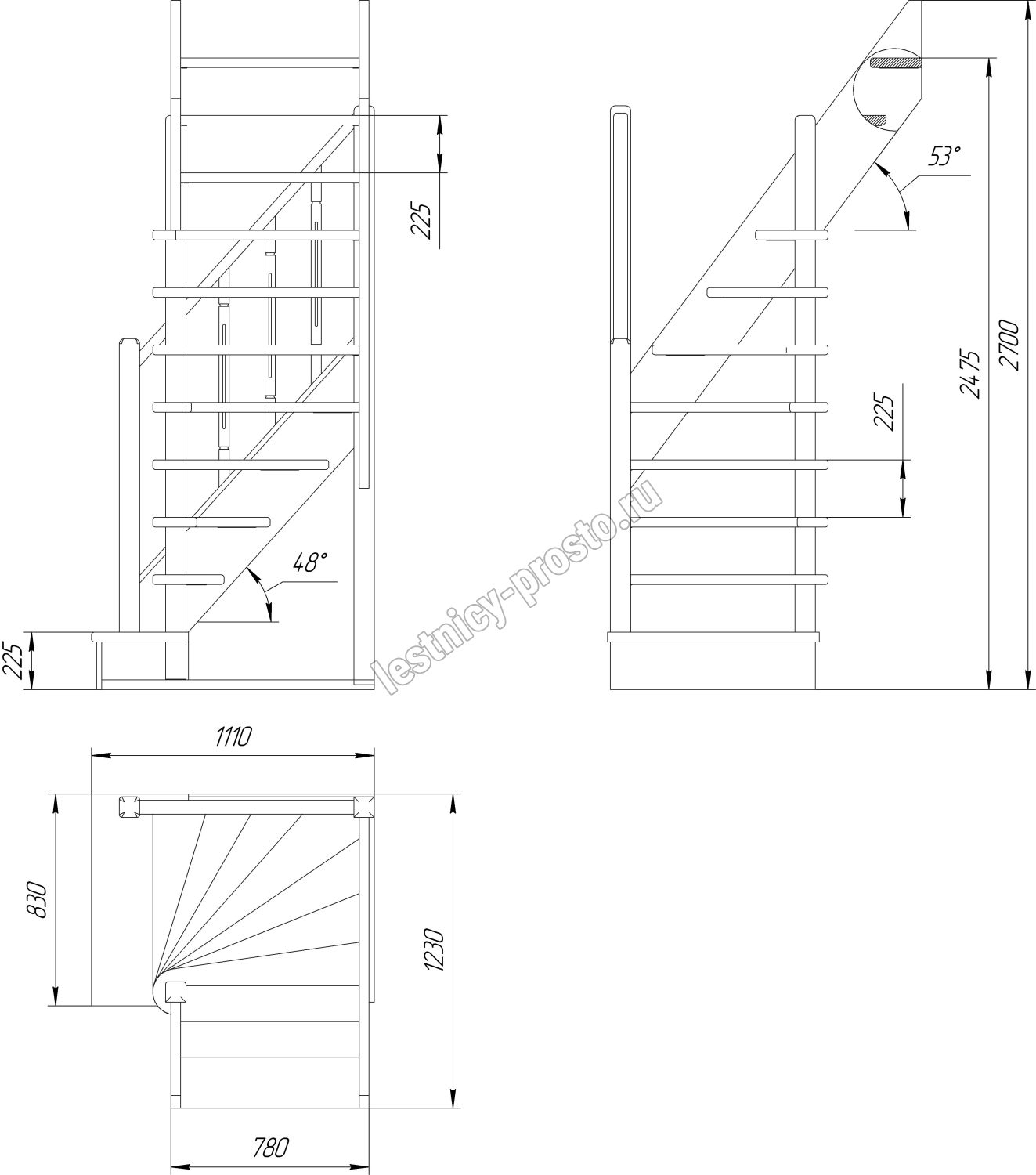 Высота лестницы 2475 - 2700 мм
