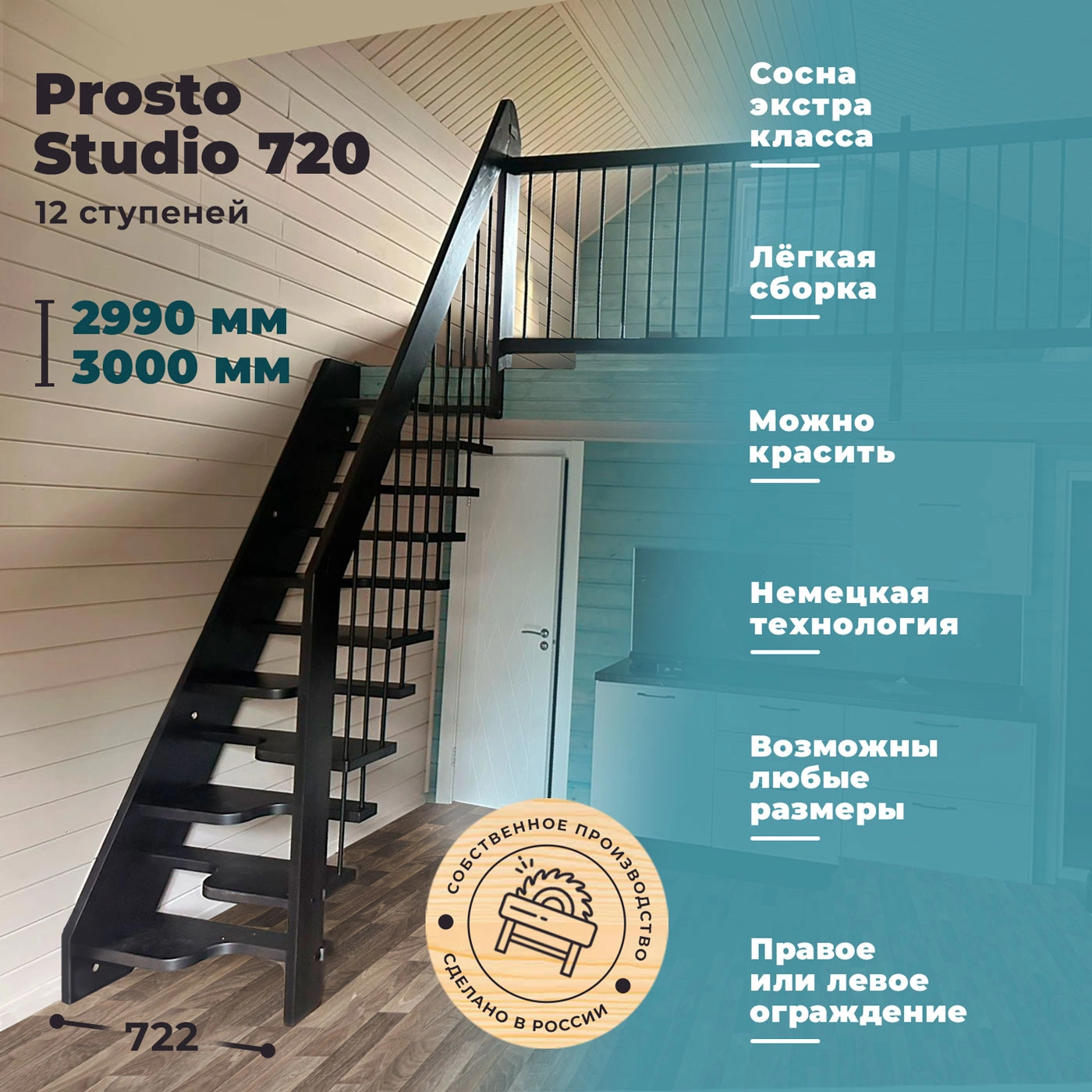 Консольная деревянная лестница Prosto Studio 720 гусиный шаг, h299-300 см (12 ступеней) из сосны