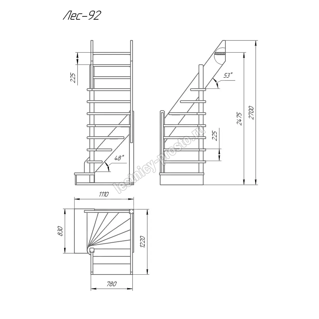 Высота лестницы 2475 - 2700 мм