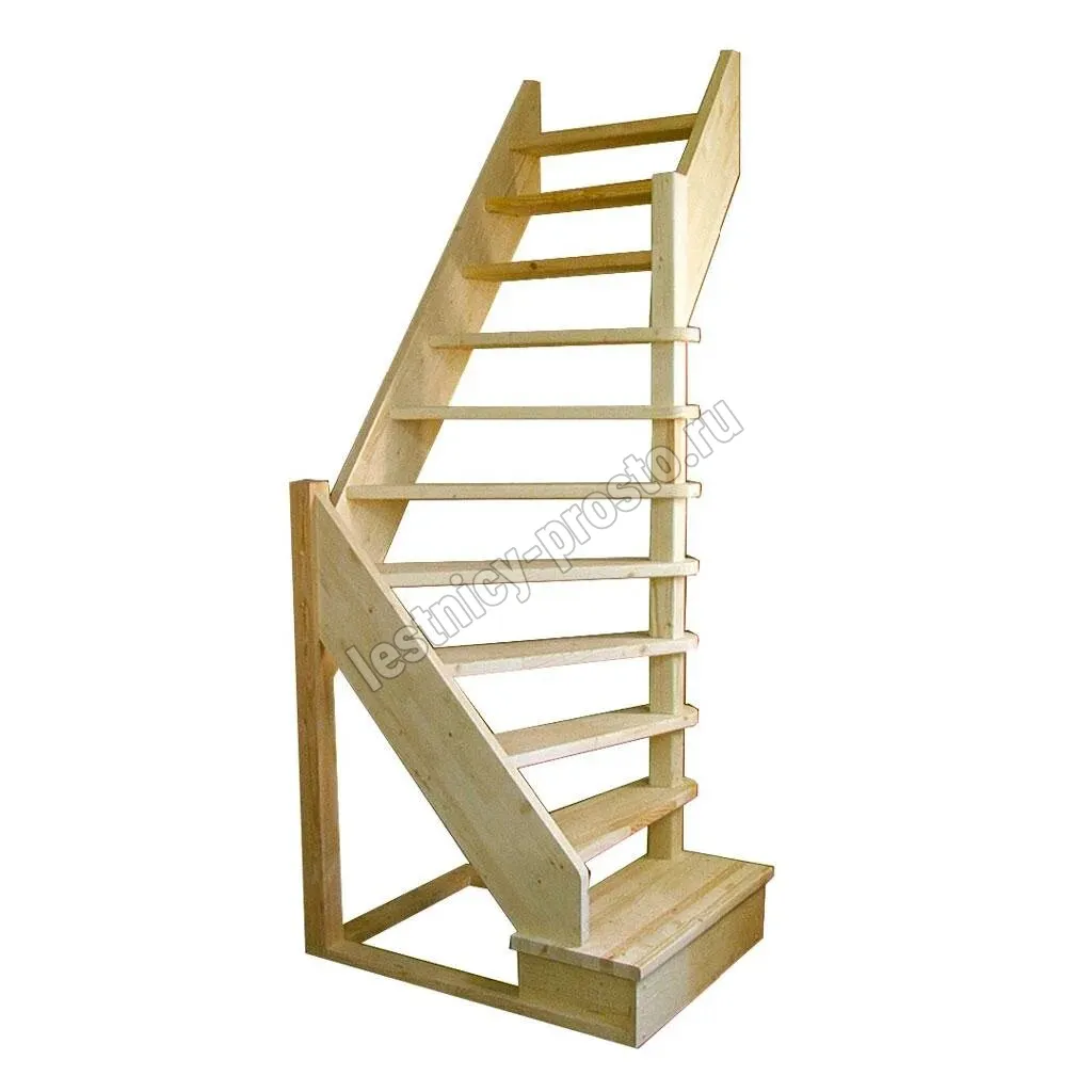Деревянная межэтажная лестница ЛЕС-92 у, Сосна |