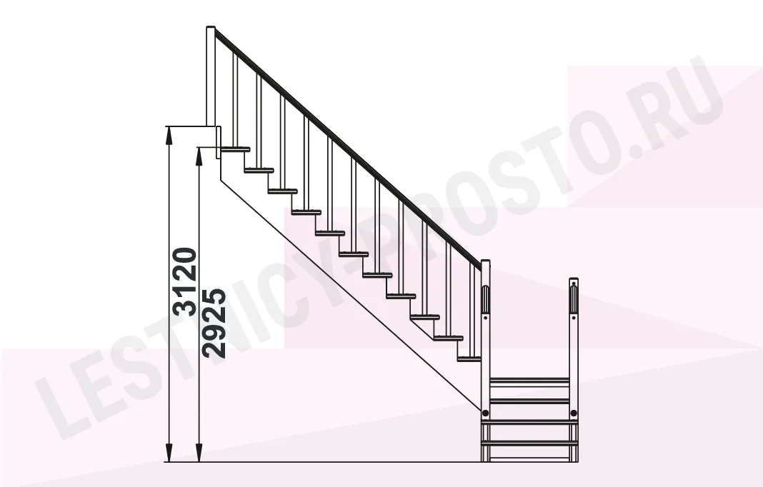Высота лестницы 2925 - 3120 мм