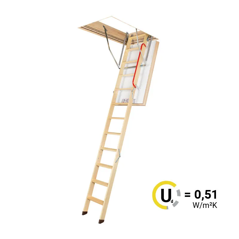 Ступени и поручень лестницы изготовлены из бука, остальные элементы из сосны.