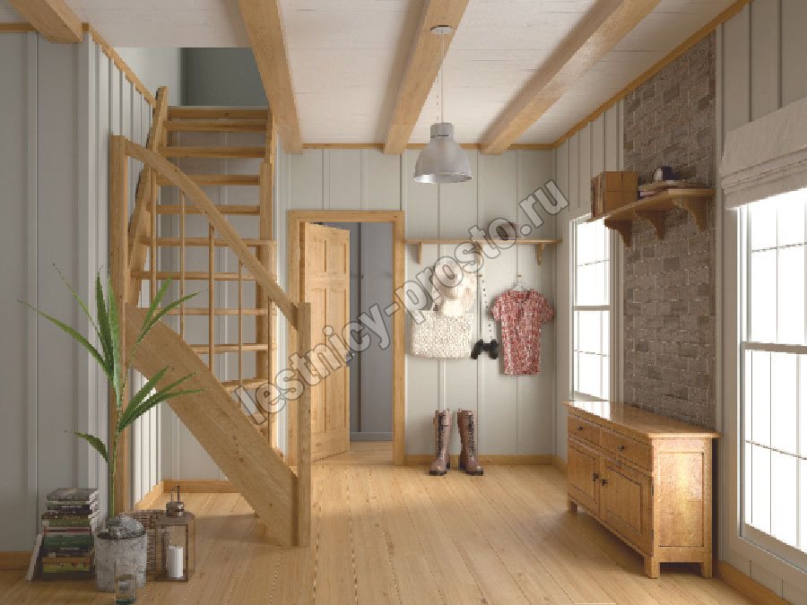 Ступени и поручень лестницы изготовлены из бука, остальные элементы из сосны.