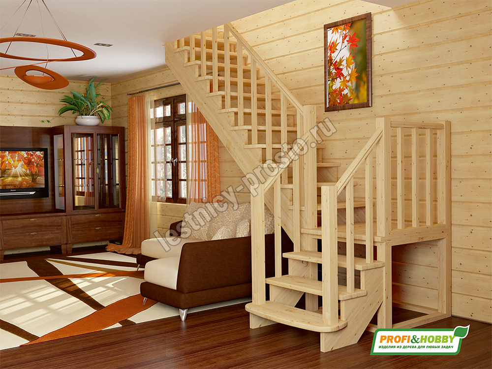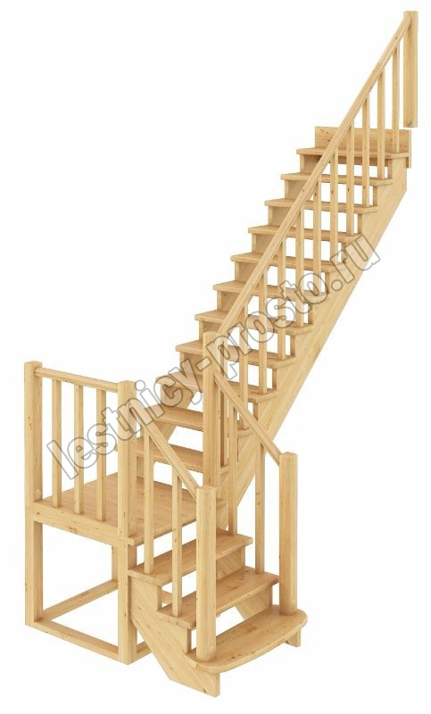 Базовый комплект включает в себя деревянные элементы лестницы и ограждения без какого-либо покрытия.