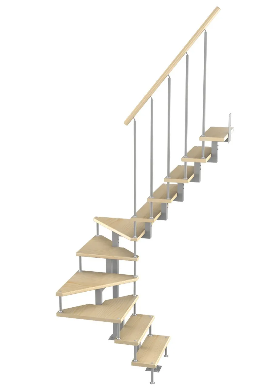 Базовый комплект включает в себя деревянные элементы лестницы с подступёнками и ограждение без какого-либо покрытия.