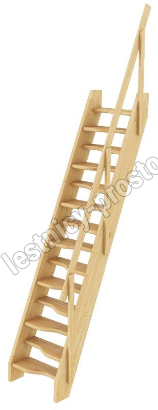 Базовый комплект включает в себя деревянные элементы лестницы и ограждения без какого-либо покрытия.