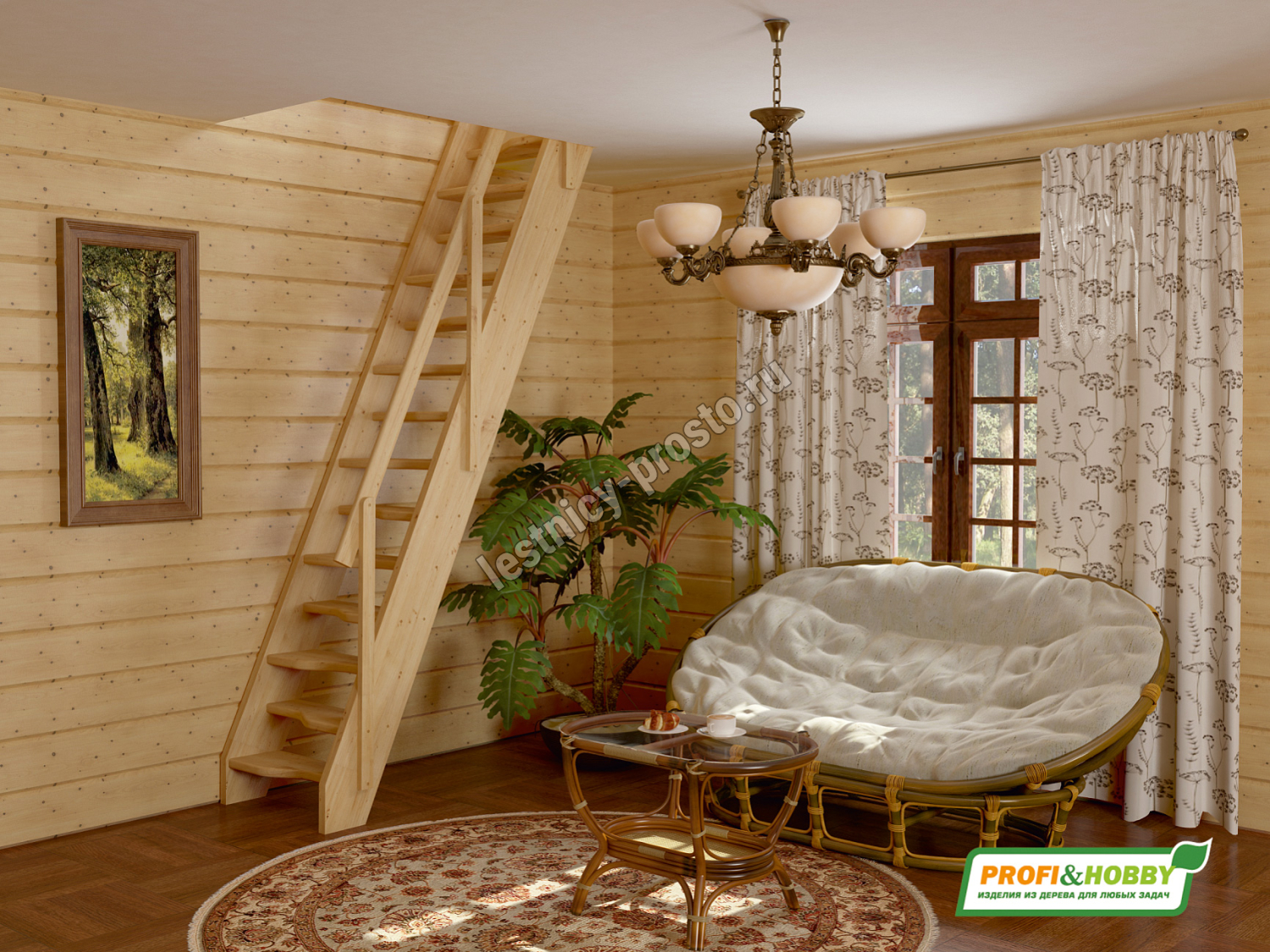 Базовый комплект включает в себя деревянные элементы лестницы и ограждения без какого-либо покрытия.
