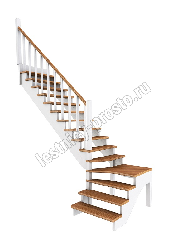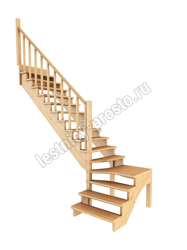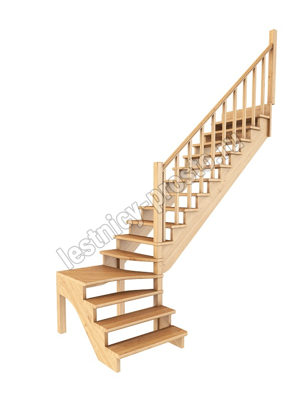 Базовый комплект включает в себя деревянные элементы лестницы и ограждения без какого-либо покрытия.
