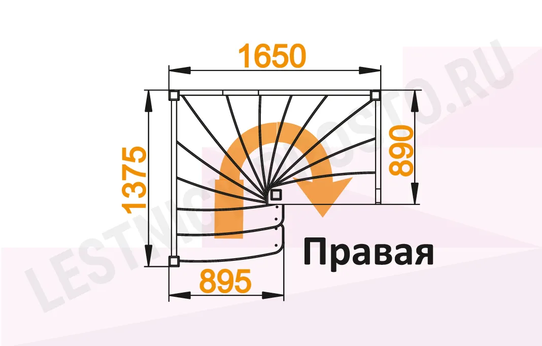 Схема лестницы ЛС-01М с поворотом направо
