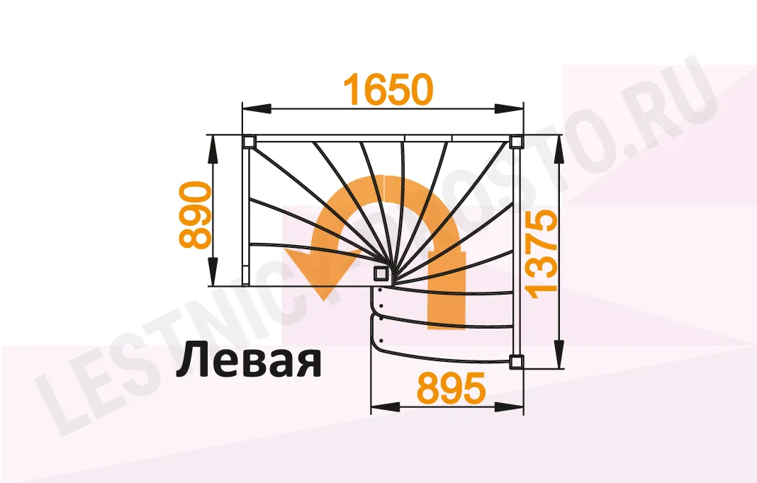 Схема лестницы ЛС-01М с поворотом налево