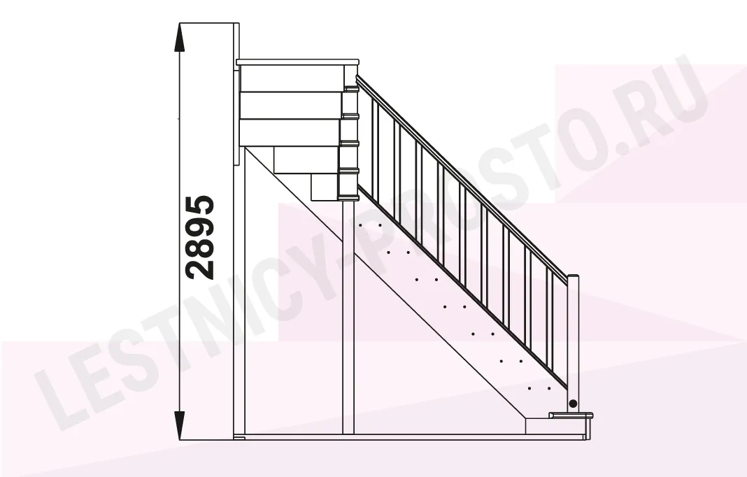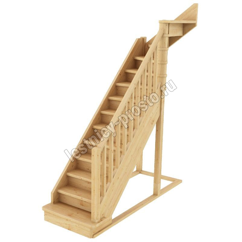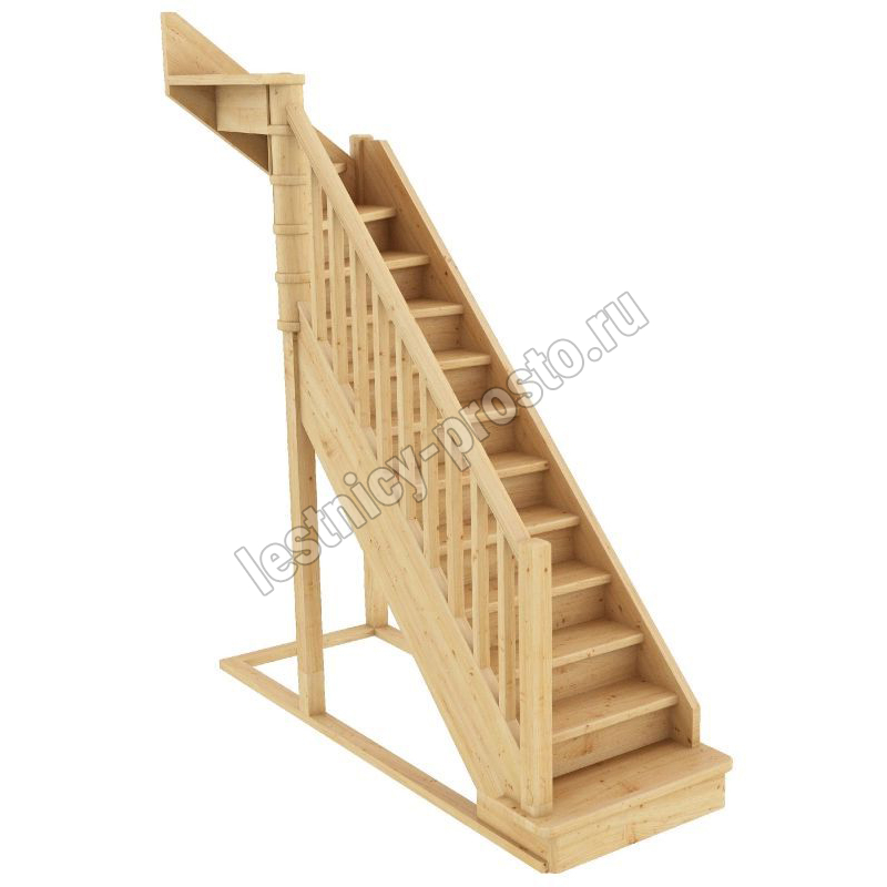Базовый комплект включает в себя деревянные элементы лестницы и ограждения без какого-либо покрытия.