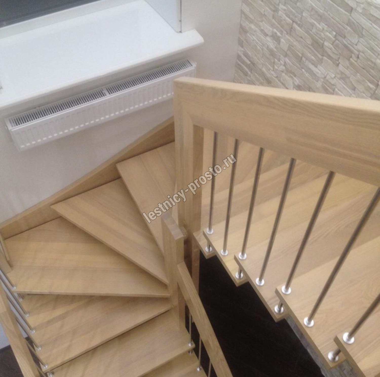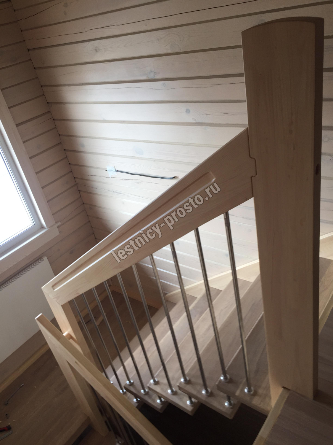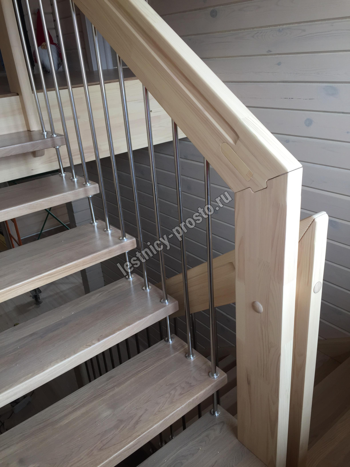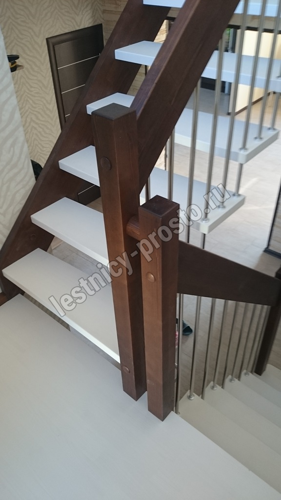 возможна комбинированная лестница: из сосны (ступени бук, ясень, дуб);