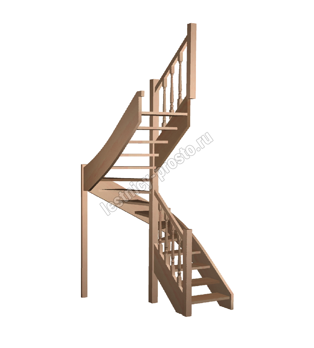 Базовый комплект включает в себя деревянные элементы лестницы и ограждения без какого-либо покрытия. В стандартной комплектации лестницы поставляются с квадратными столбами и точеными балясинами, при желании, можно заменить вид ограждений на любые другие из нашего каталога (оплачивается и оговаривается отдельно). Под заказ возможно изготовление данной лестницы с другими размерами, подходящими вашему помещению.