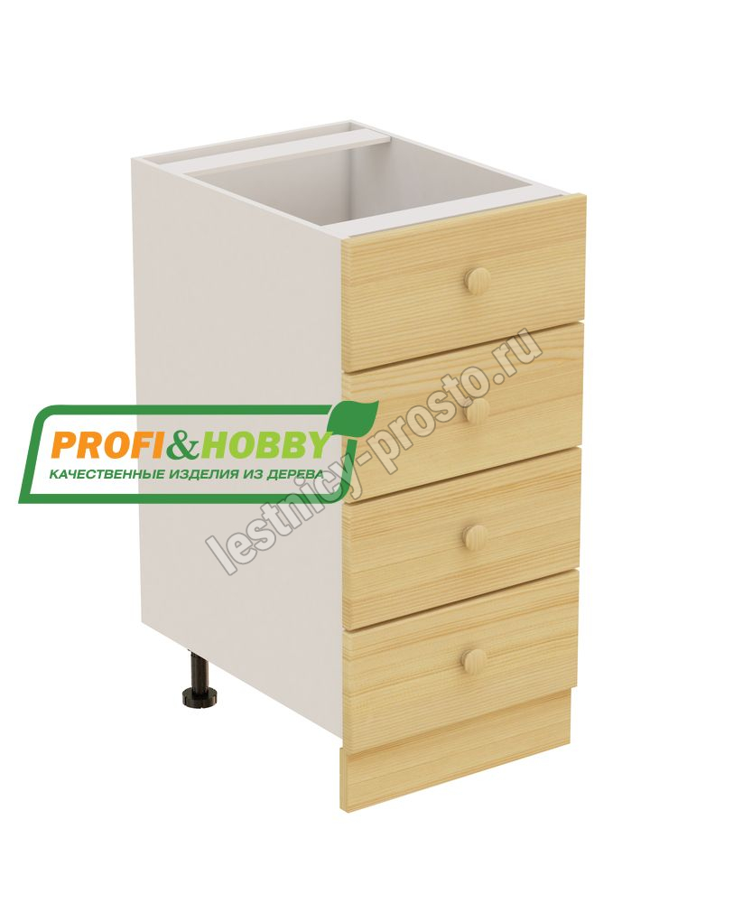 Тумба 4 ящика 400х530х720 + фасад сосна без покраски