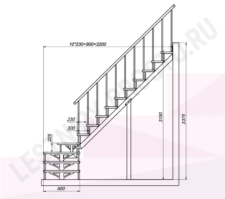 - таким образом вы получаете возможность увеличить общую высоту подъёма лестницы до необходимой.