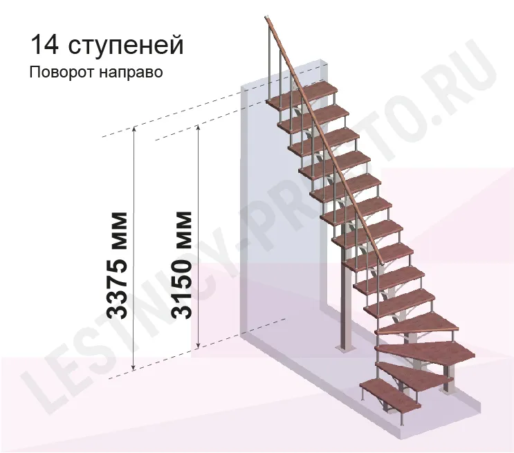 Лестница PROSTO MONO Г-образная h337.5 см, ступени лиственница