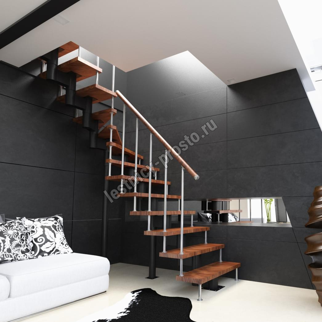 Каркас лестницы представляет собой набор модулей, которые комплектуются уже готовыми к монтажу.