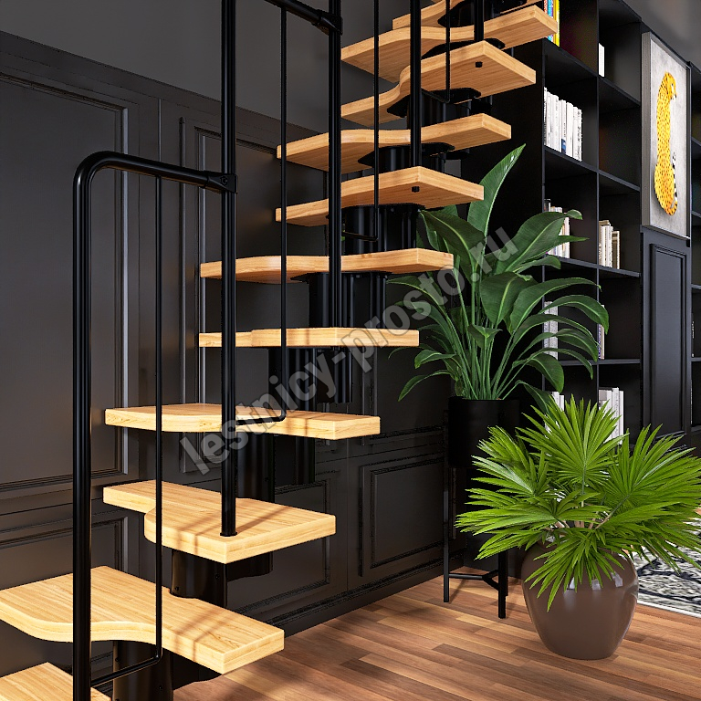 Лестница Prosto Urban Black гусиный шаг 600 мм, h198-288 см (11 ступеней), дуб