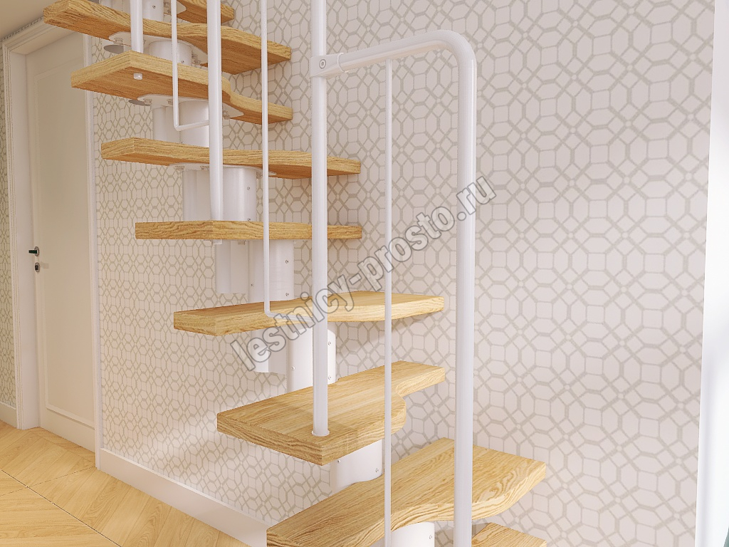Лестница Prosto Urban White гусиный шаг 600 мм, h180-264 см (10 ступеней), берёза мультиплекс
