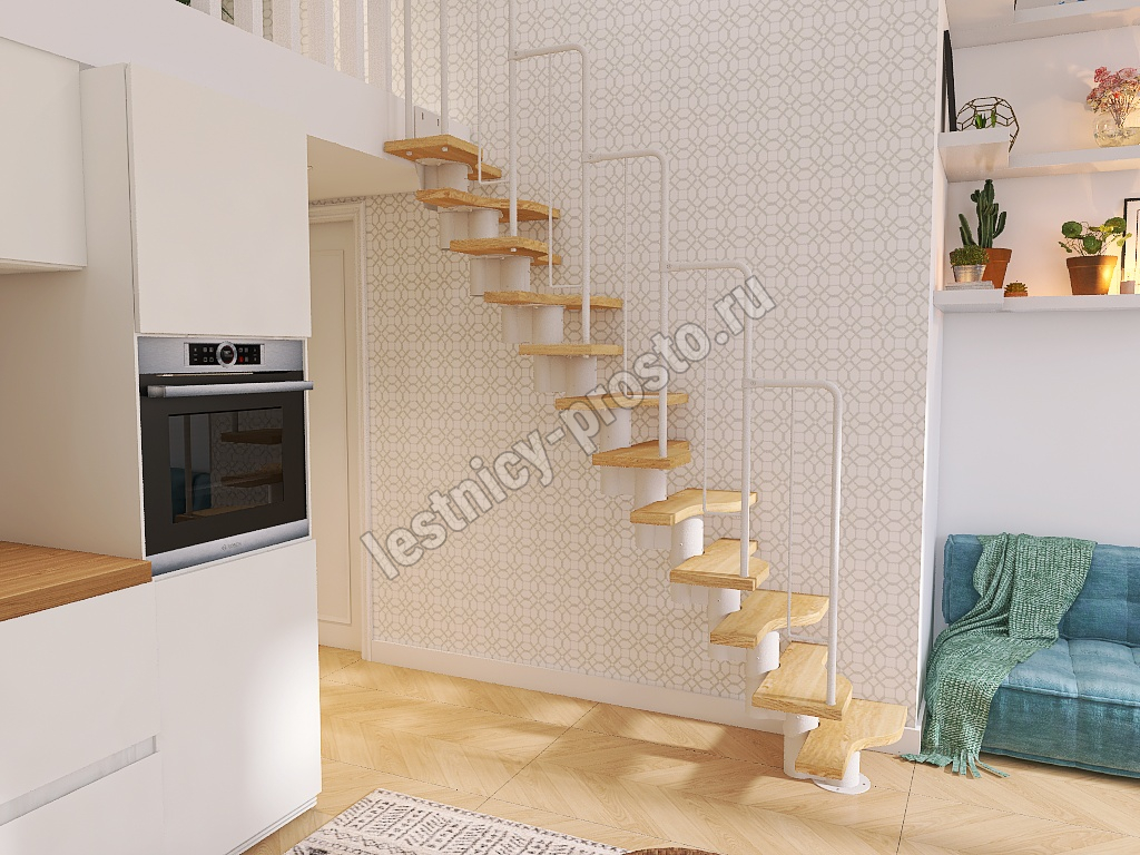 Лестница Prosto Urban White гусиный шаг 600 мм, h216-312 см (12 ступеней), бук