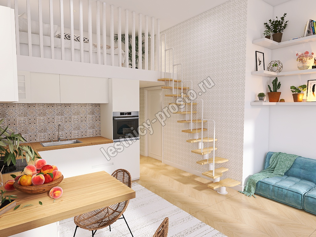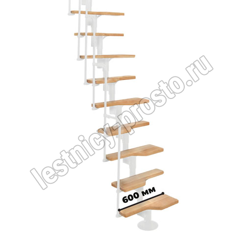 Лестница Prosto Urban White гусиный шаг 600 мм, h198-288 см (11 ступеней), берёза мультиплекс