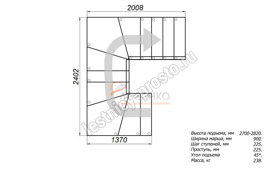 Модульная лестница Спринт 225 2700-2820, Серый, Бук, Крашеная