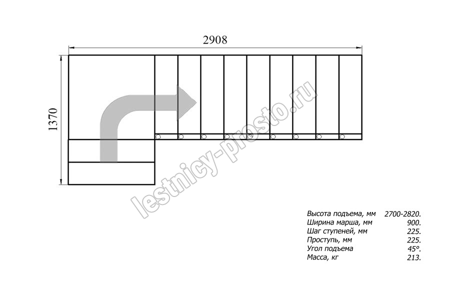 Модульная лестница Статус 225 2700-2820, Белый, Лиственница, Крашеная
