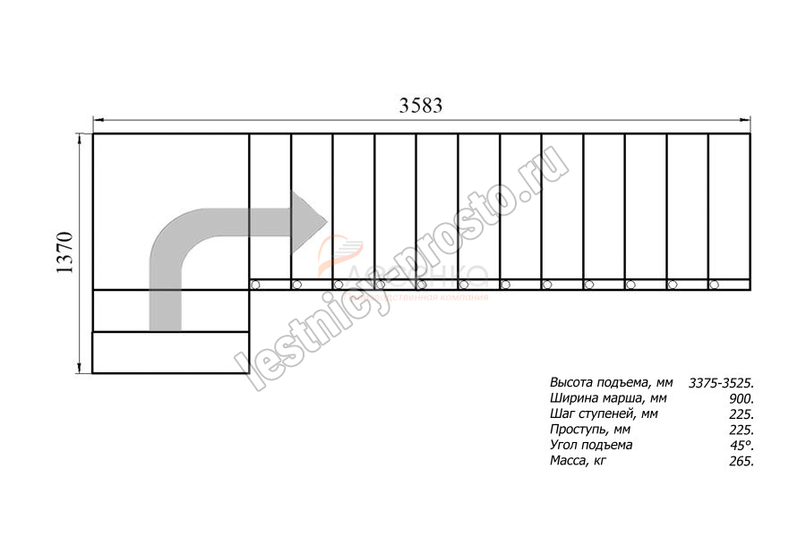 Модульная лестница Статус 225 3375-3525, Серый, Сосна, Крашеная, Без Ступений