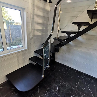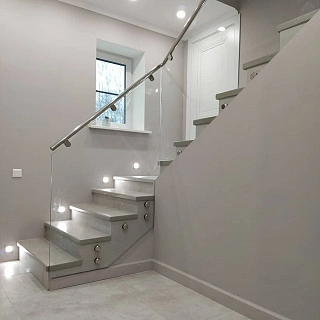 Лестница на второй этаж с ограждением из стекла LP-1-4