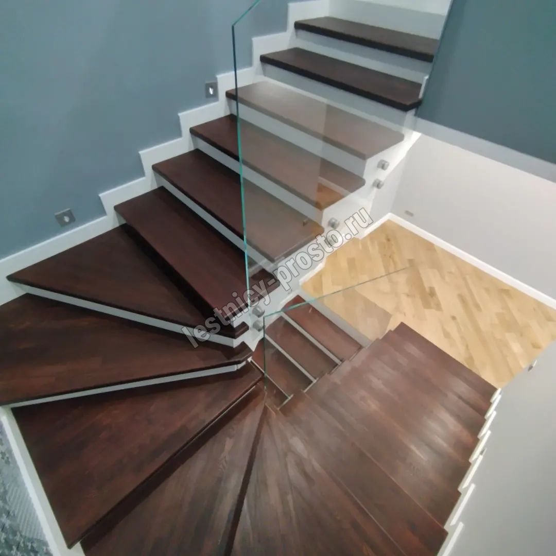 Поворот реализован через забежные ступени