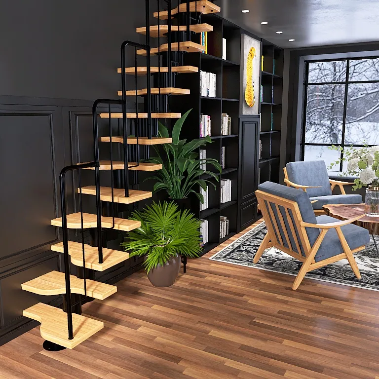 Лестницу Montreal Style можно монтировать в круглые и квадратные проемы. Ступени изготовлены из бука по технологии MULTIPLEX, покрыты износостойким защитным лаком.