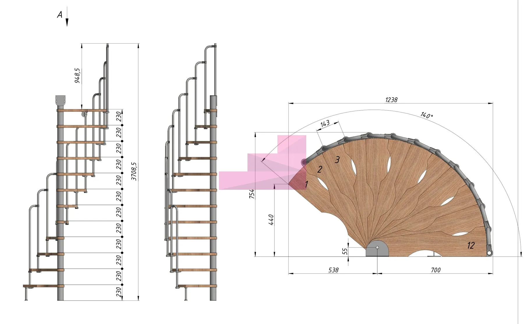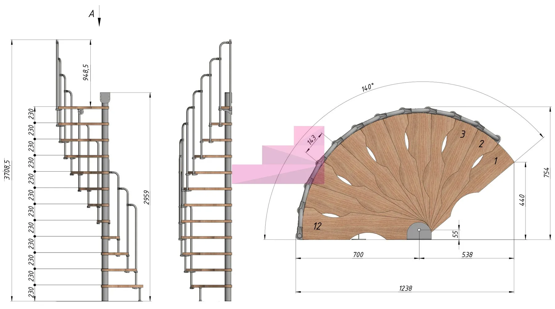Высота лестницы 2760 - 2990 (12 ступеней) мм