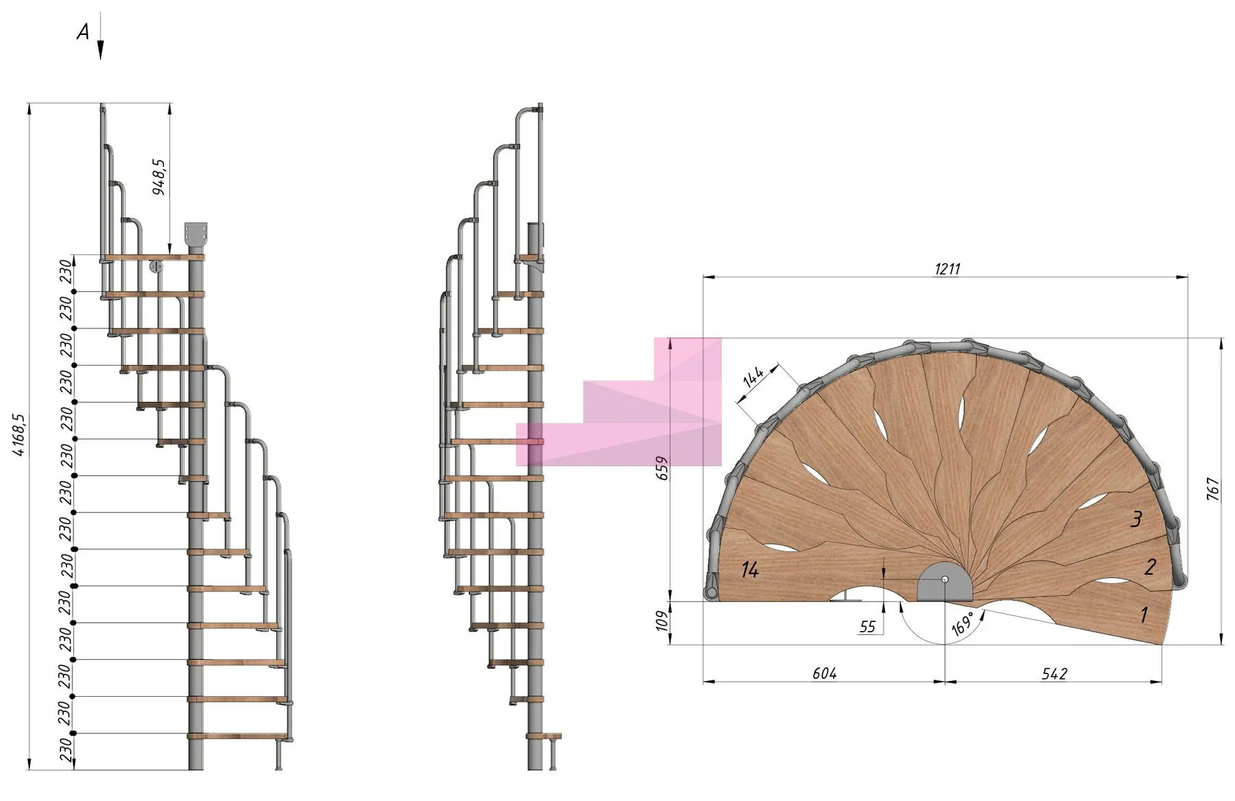 | Винтовая лестница PROSTO MINI 70×140 см, h322-345 см |