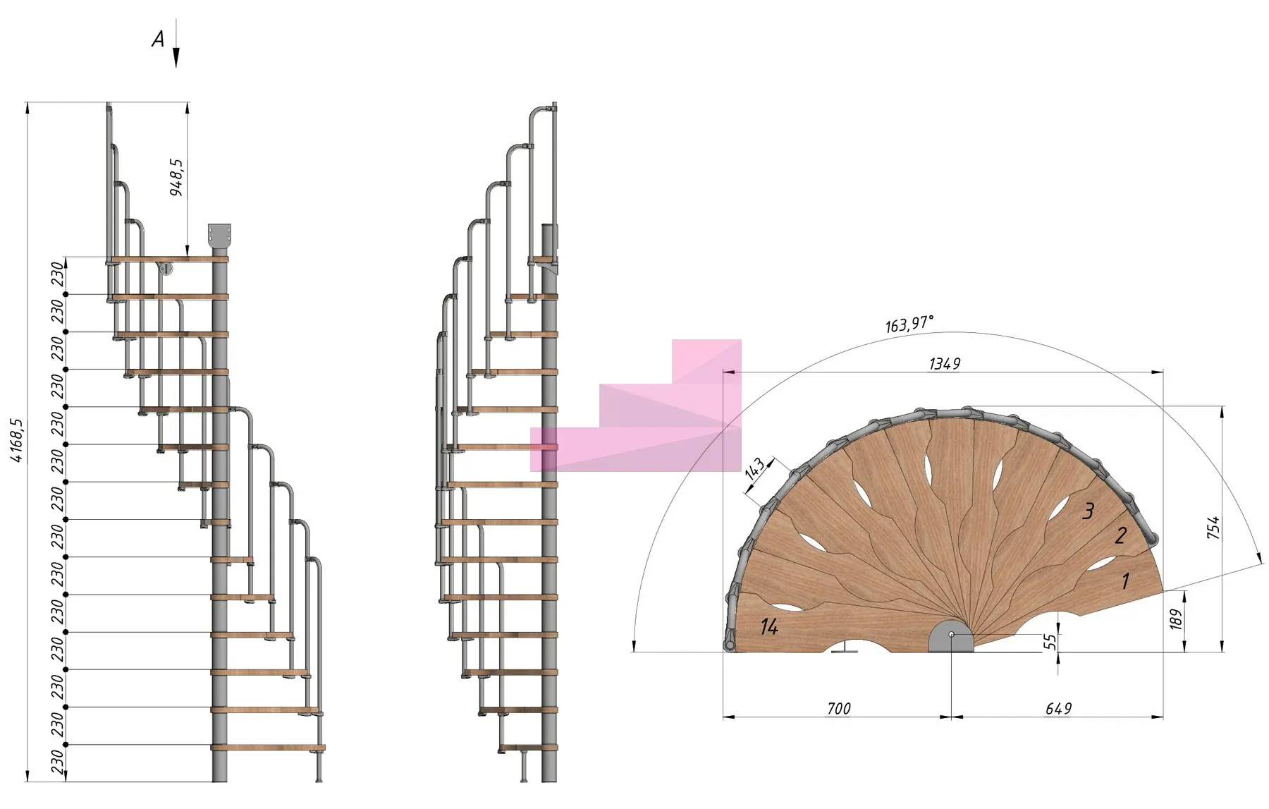 Ступени, элементы каркаса, ограждение, необходимая фурнитура и крепёж.