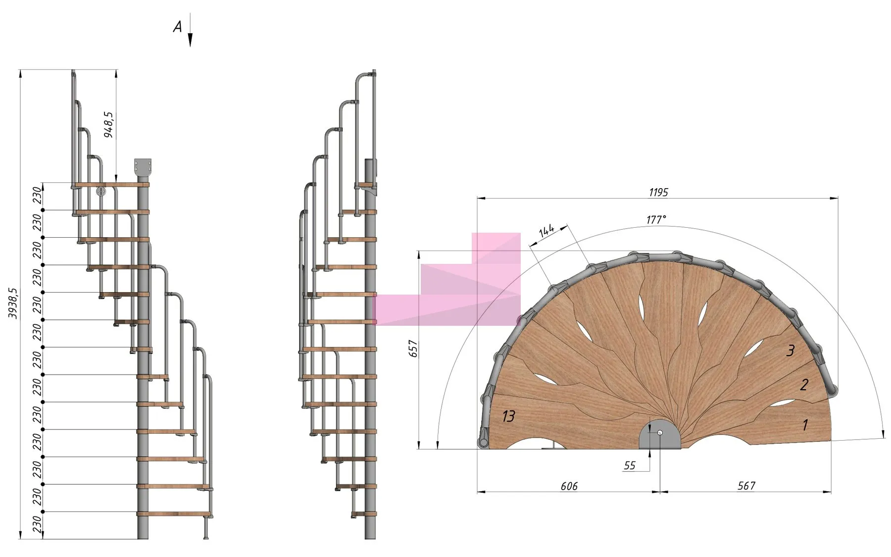 | Винтовая лестница PROSTO MINI 70×140 см, h276-299 см |