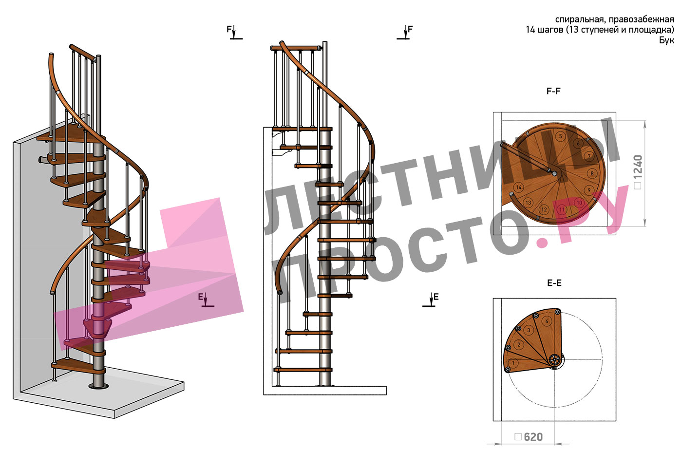 Винтовая лестница Prosto Spiral Black D120см, h303.9-348,1 см, бук