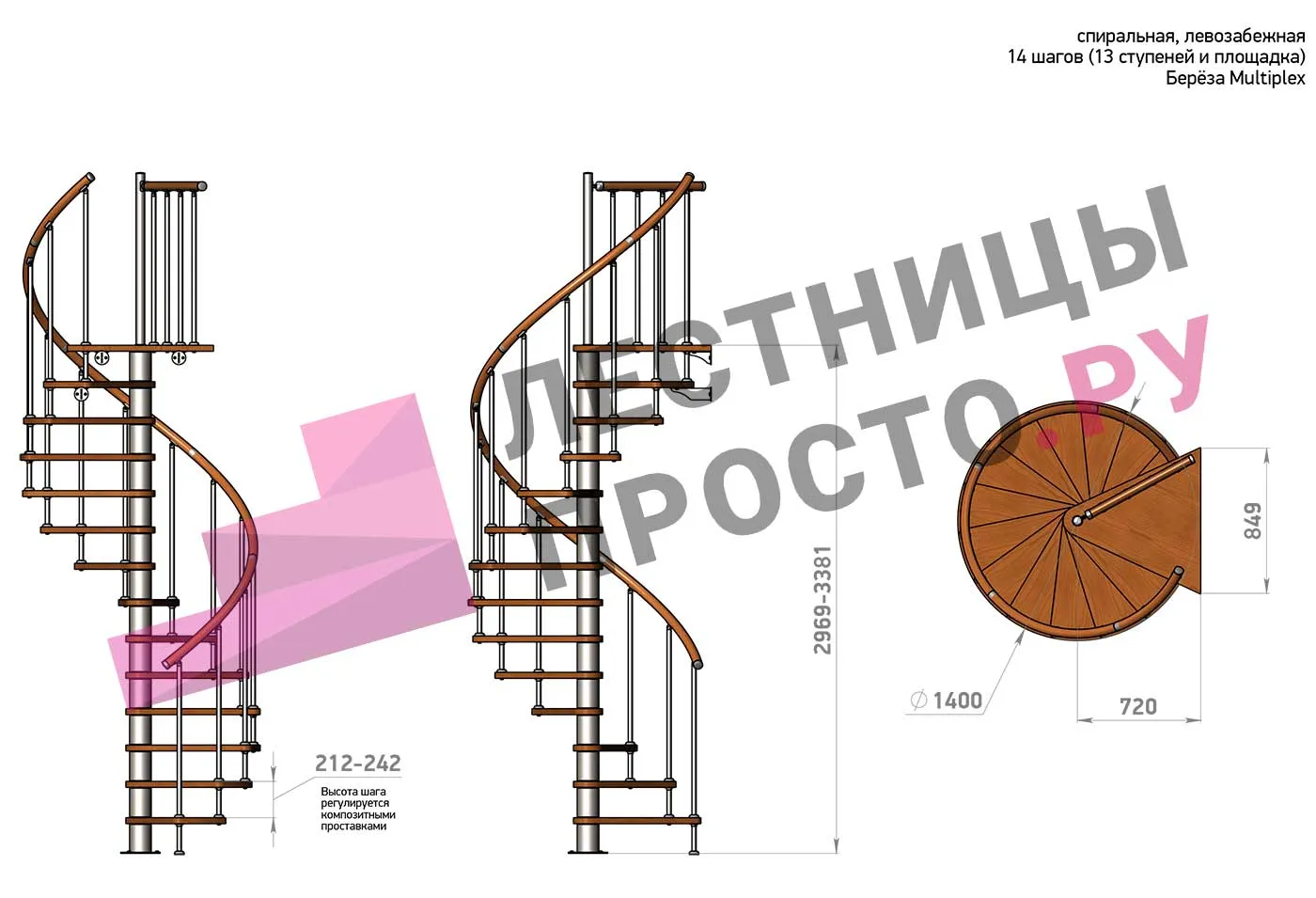 Винтовая лестница Prosto Spiral Black D140см, h296.9-338.1 см