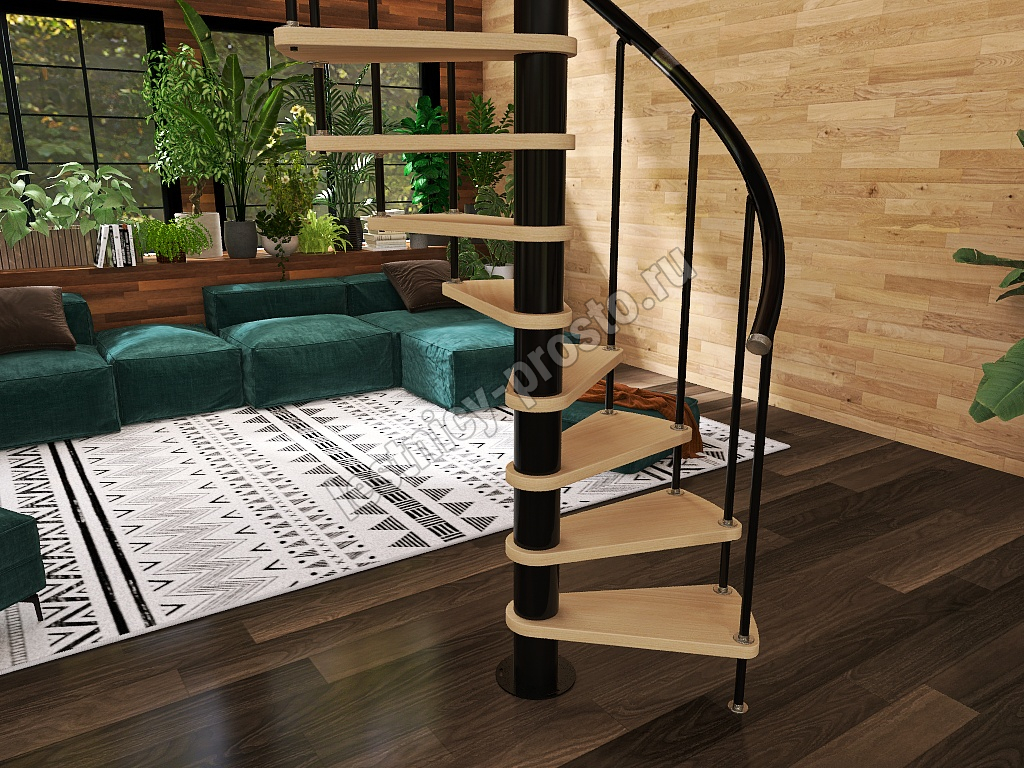 Винтовая лестница Prosto Spiral Black D160см, h325.7-369.8 см, бук