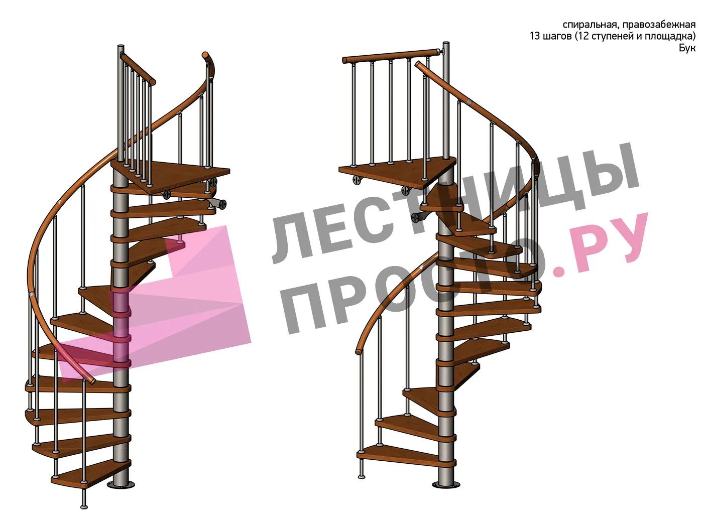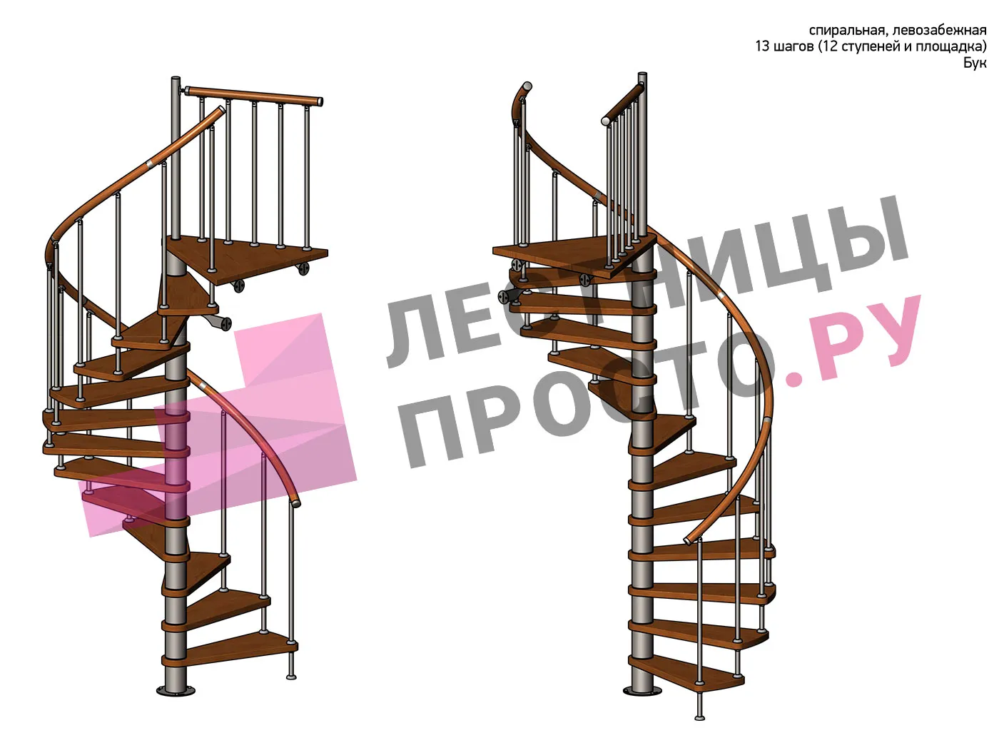 Винтовая лестница Prosto Spiral White D160см, h282.2-326,3 см, бук