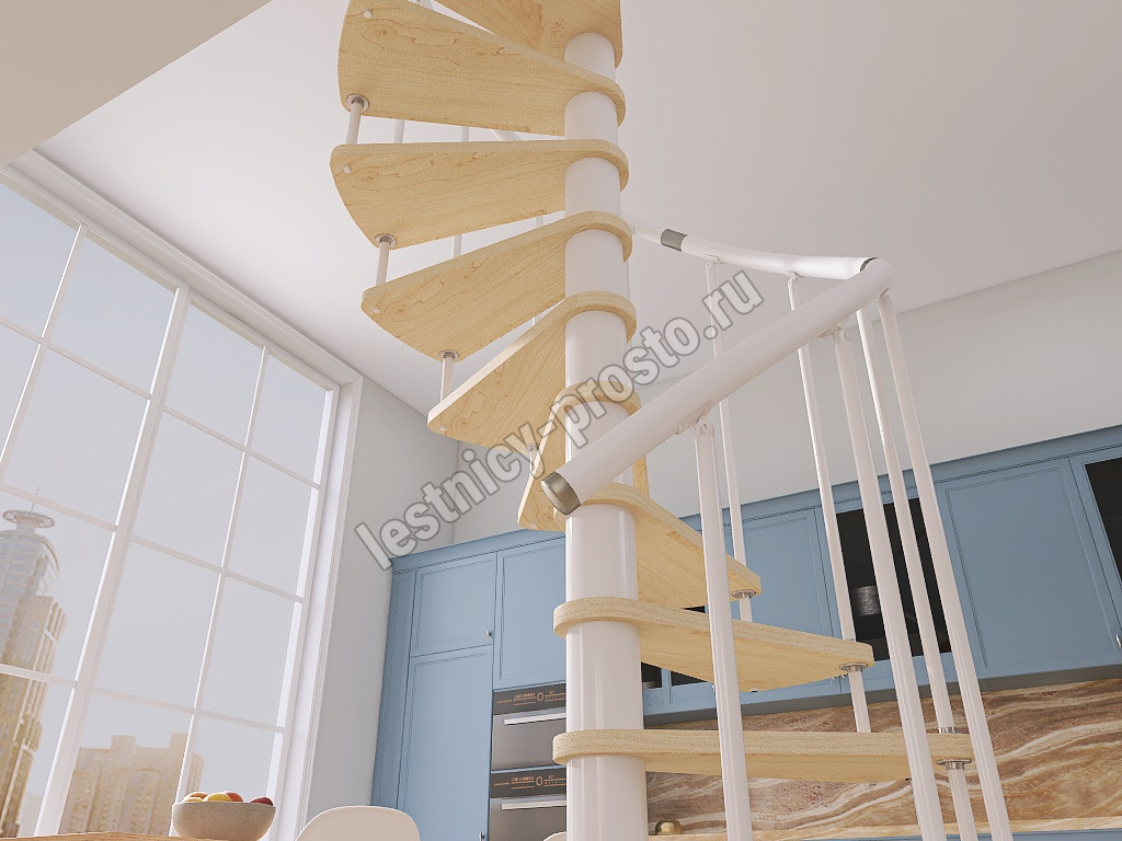 Винтовая лестница Prosto Spiral White D120см, h303.9-348,1 см, бук |