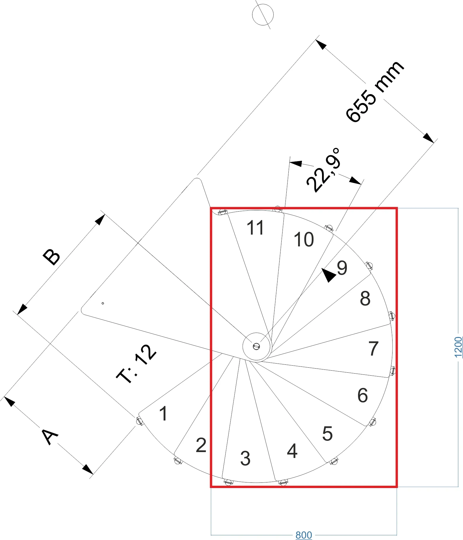 Ступени лестницы изготовлены из бука по технологии MULTIPLEX и покрыты износостойким защитным лаком. Лестница монтируется как по часовой стрелке, так и против. Возможен монтаж в круглый или квадратный проём. Ограждение: стальные трубки, Ø25 мм RAL 9006. Поручень: гибкий цельный ПВХ-поручень Ø40 мм серого цвета. Конструкция и балюстрада окрашены порошковым способом в серый цвет (RAL 9006).