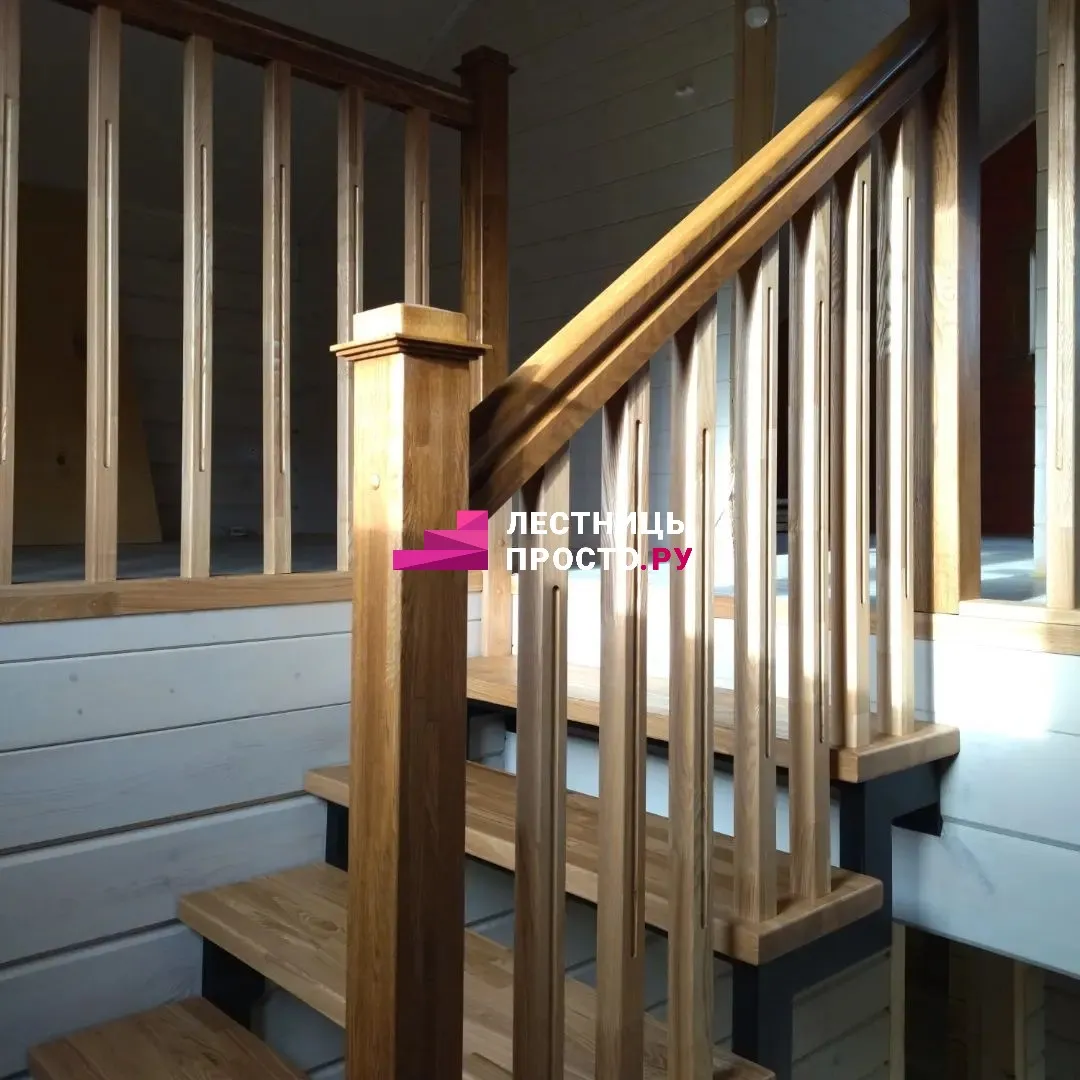 Металлическая лестница с дубовыми ступенями и ограждением LP-1-20
